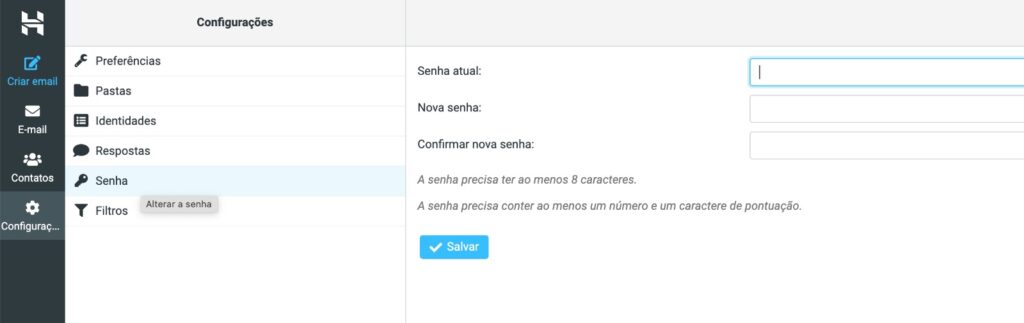 Encontre na página a sessão de Configuração, em seguida Senha.