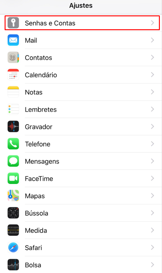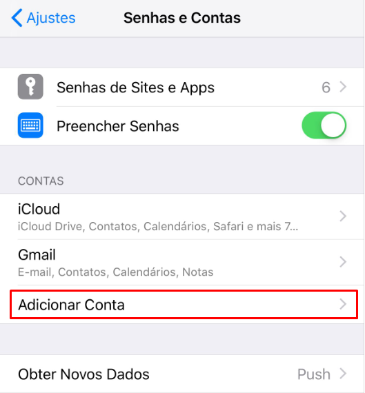 9. Volte para Configurações -> Senhas e Contas. Você verá o nome da conta que acabou de criar. Neste exemplo, o nome dela é Tutorial.