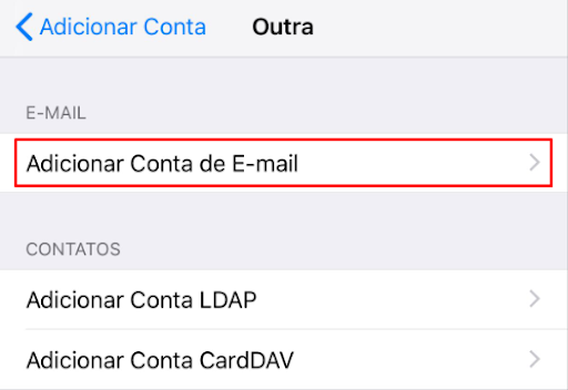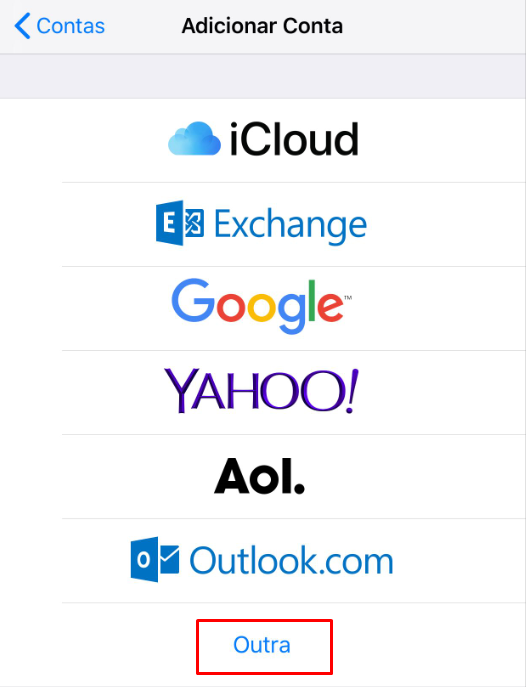 3. Aqui você vai ver diversos provedores de email. Clique em Outra para adicionar um endereço de email customizado.