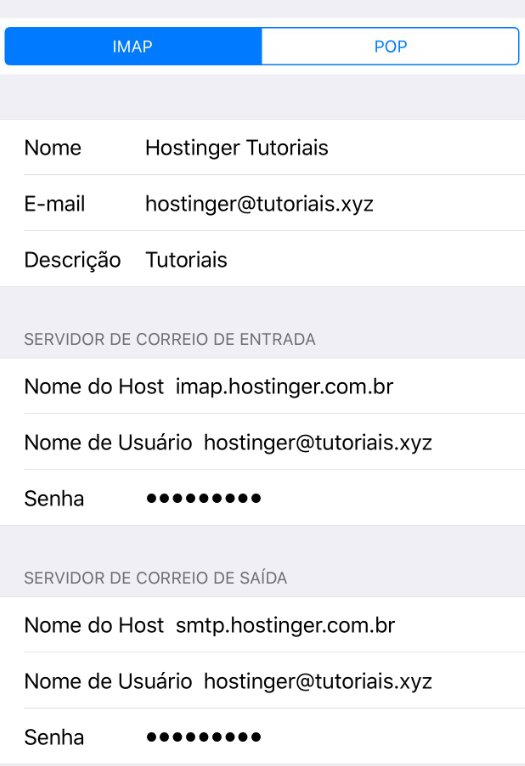 Caso seu modelo peça servidores de entrada (IMAP) e de saída (SMTP), estes serão os dados: